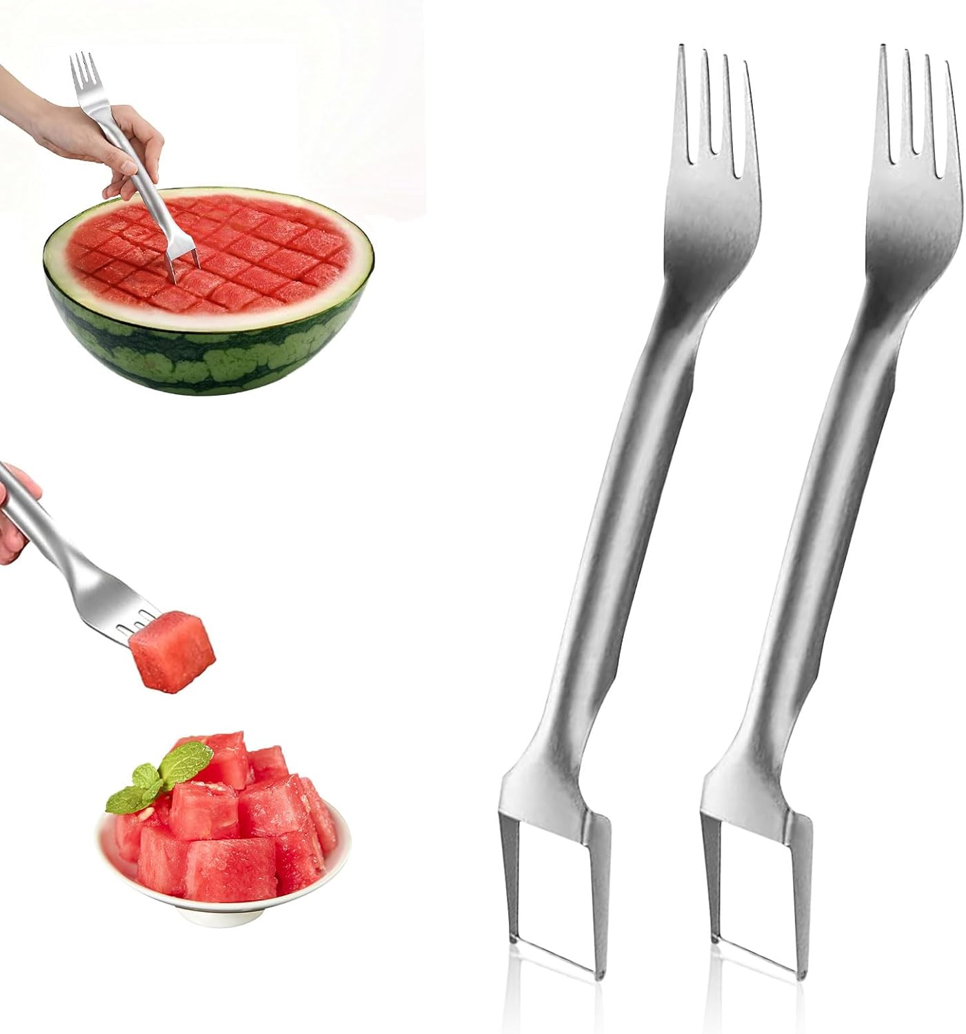 2-in-1 Stainless Steel Fruit Cutter, 2025 New Upgrade Watermelon Fork Slicer Cutter Tool